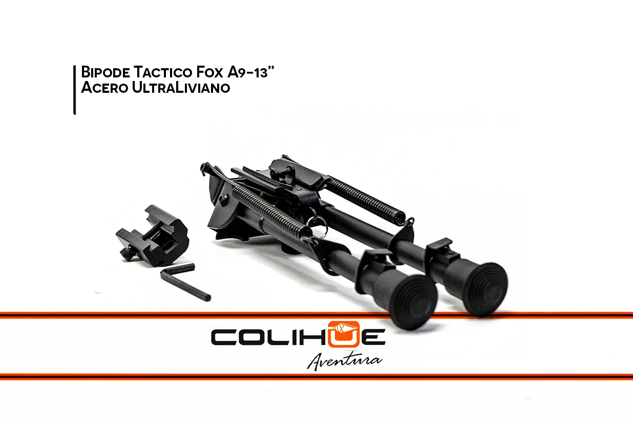 GALERIA DE FOTOS Anterior Siguiente Especificaciones Técnicas MARCA Fox MODELO A9-13 PESO (gramos) 520 gramos EXTENSIBLE Si / 9″ min. – 13″ max. PIVOTANTE Si ADAPTABLE A KITIPONE Si ADAPTABLE A RIEL Si – Riel de 22mm MATERIAL Acero Quienes somos? Somos Colihue Aventura, una empresa especializada en Armas de Aire, líder en el rubro, […]
