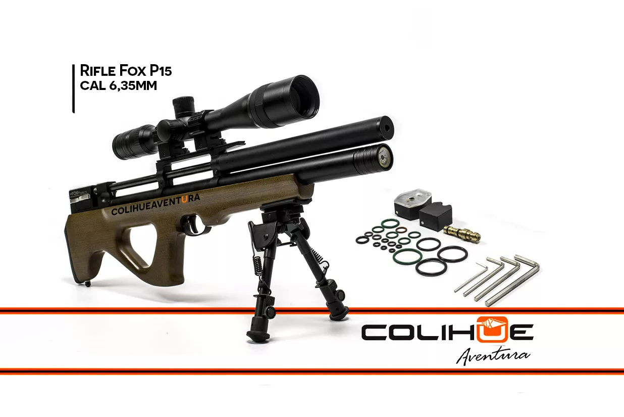 GALERIA DE FOTOS Fox «P15» cal 6,35mm Un rifle diseñado para ser ágil y compacto. Con solo 2 kilogramos de peso, el Fox P15 se convierte en uno de los PCP mas livianos del mercado. Este Bullpup incluye su cargador de 8 disparos. Posee un gatillo regulable, con seguro incorporado en este ultimo. Palanca de […]