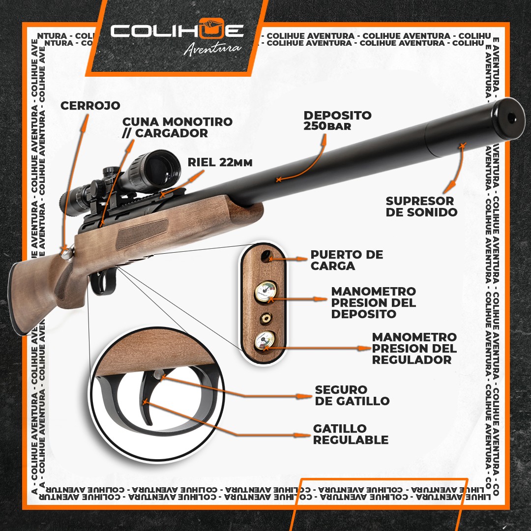 | ACCESORIOS INCLUIDOS | Supresor de Sonido Incorporado Cargador 9 Disparos Acople de Carga Kit de O’rings y Herramientas |