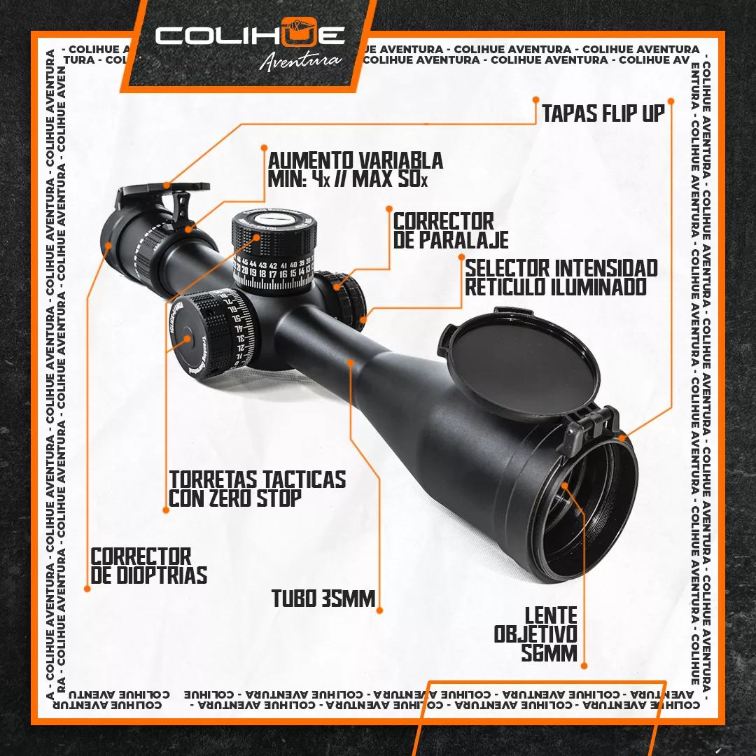 - Iluminación: Retículo Iluminado (SFIR) con niveles de intensidad para uso en poca luz.