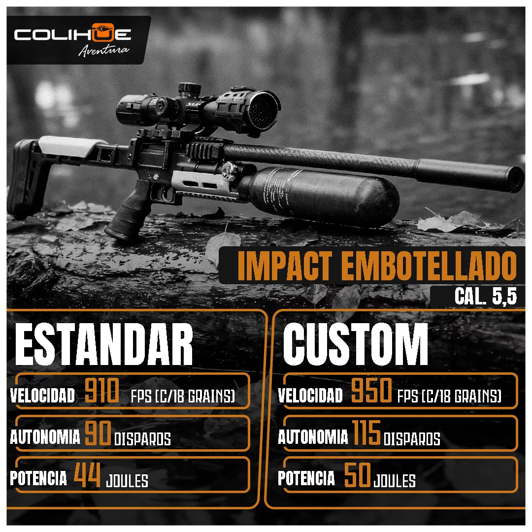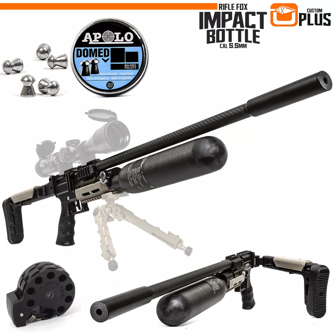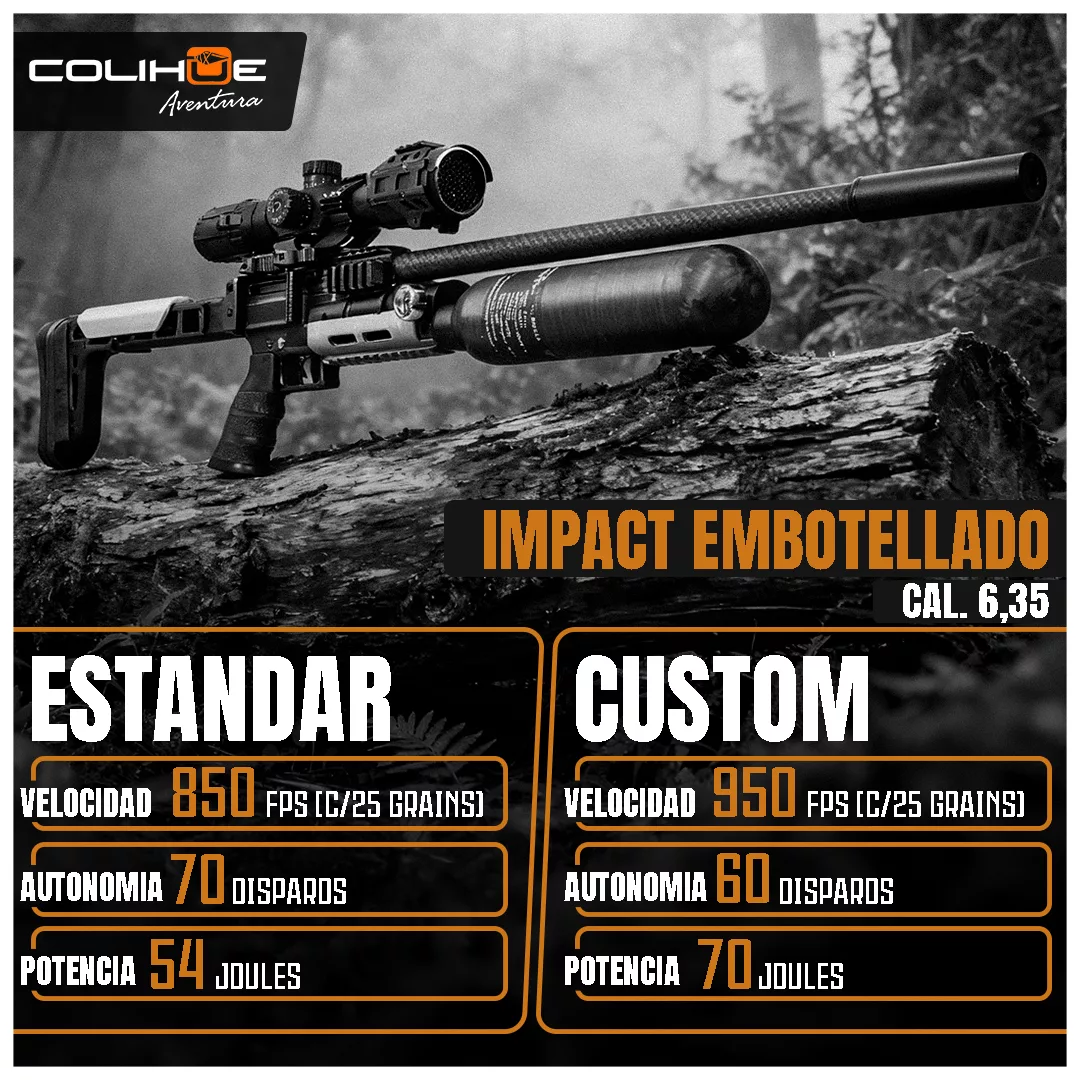 El Fox Impact Embotellado Custom Plus redefine la experiencia de caza y tiro de precisión. Gracias a su configuración de depósito de gran capacidad, elimina la preocupación por la autonomía, permitiendo jornadas extensas sin necesidad de recargas constantes. Su regulador interno asegura que desde el primer hasta el último disparo la velocidad de salida sea uniforme, garantizando que el punto de impacto no varíe, algo esencial para la ética en la caza y la exactitud deportiva.