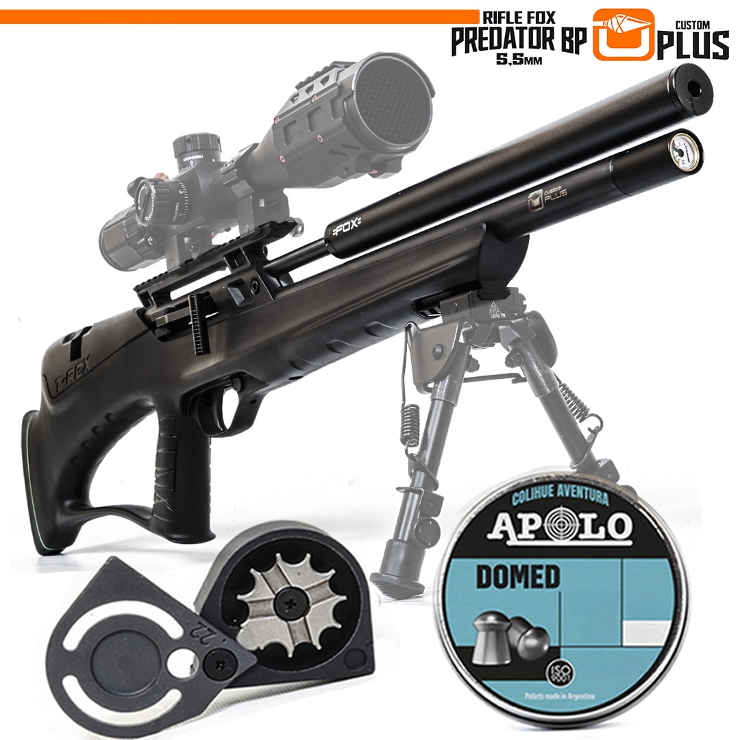El Rifle «Predator» de Fox representa el último avance en la línea de Rifles PCP de la marca. Con un diseño táctico, no solo en su apariencia, sino también en su funcionalidad, este rifle destaca por su agilidad y un peso bajo y perfectamente equilibrado.