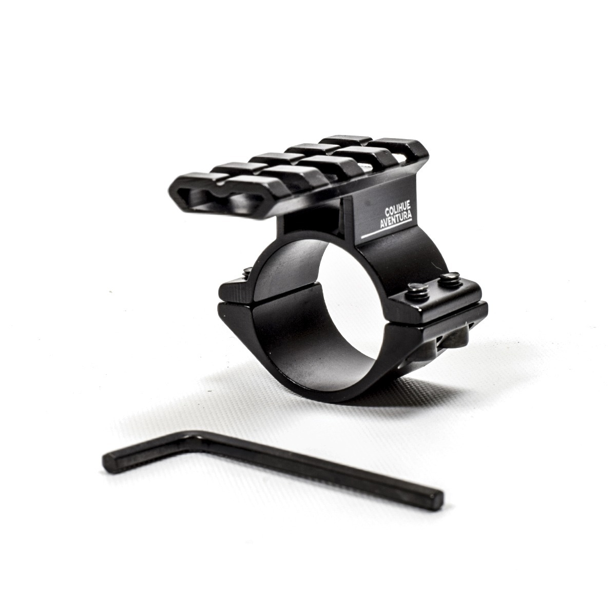 Proporciona un riel de WEAVER-PICATINNY de 6 ranuras para vistas, luces y láseres de respaldo