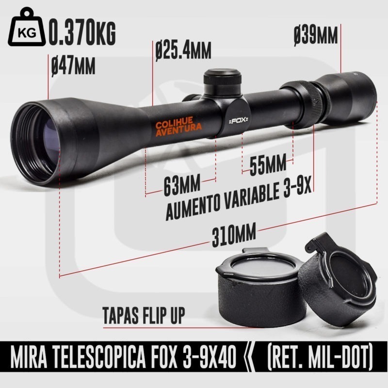 Mira Telescopica Fox 3-9×40 Mil Dot