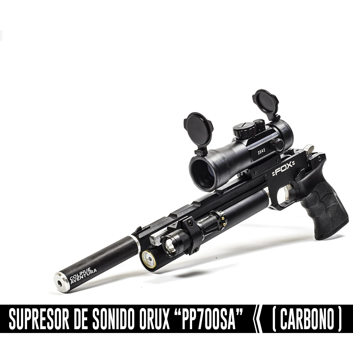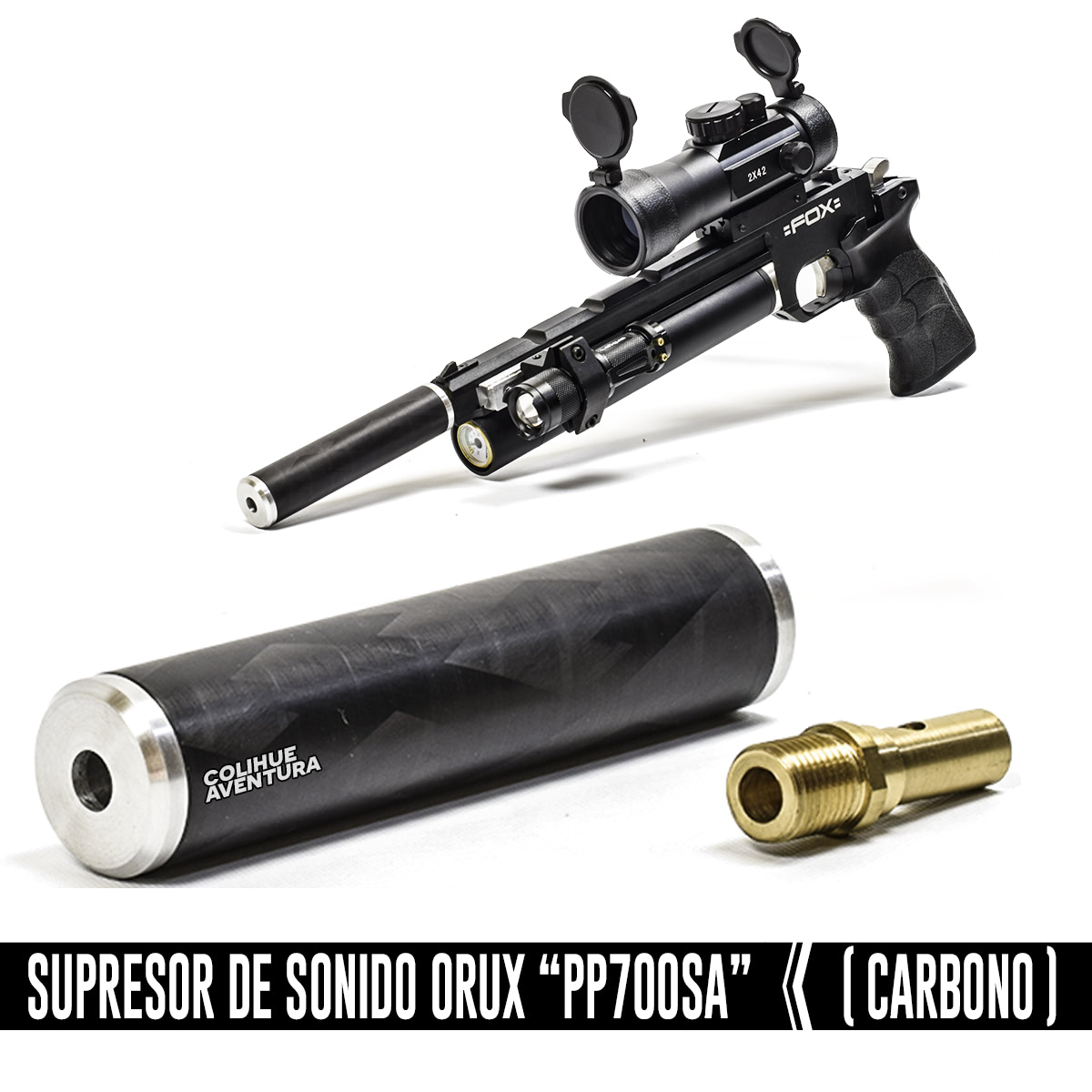 Por eso desde Colihue Aventura desarrollamos un supresor de sonido de Fibra de Carbono, compacto y liviano, capaz de adaptarse a la Fox PP700-SA, ya que incluimos también el adaptador necesario para poder colocarlo en LA PP700S-A…