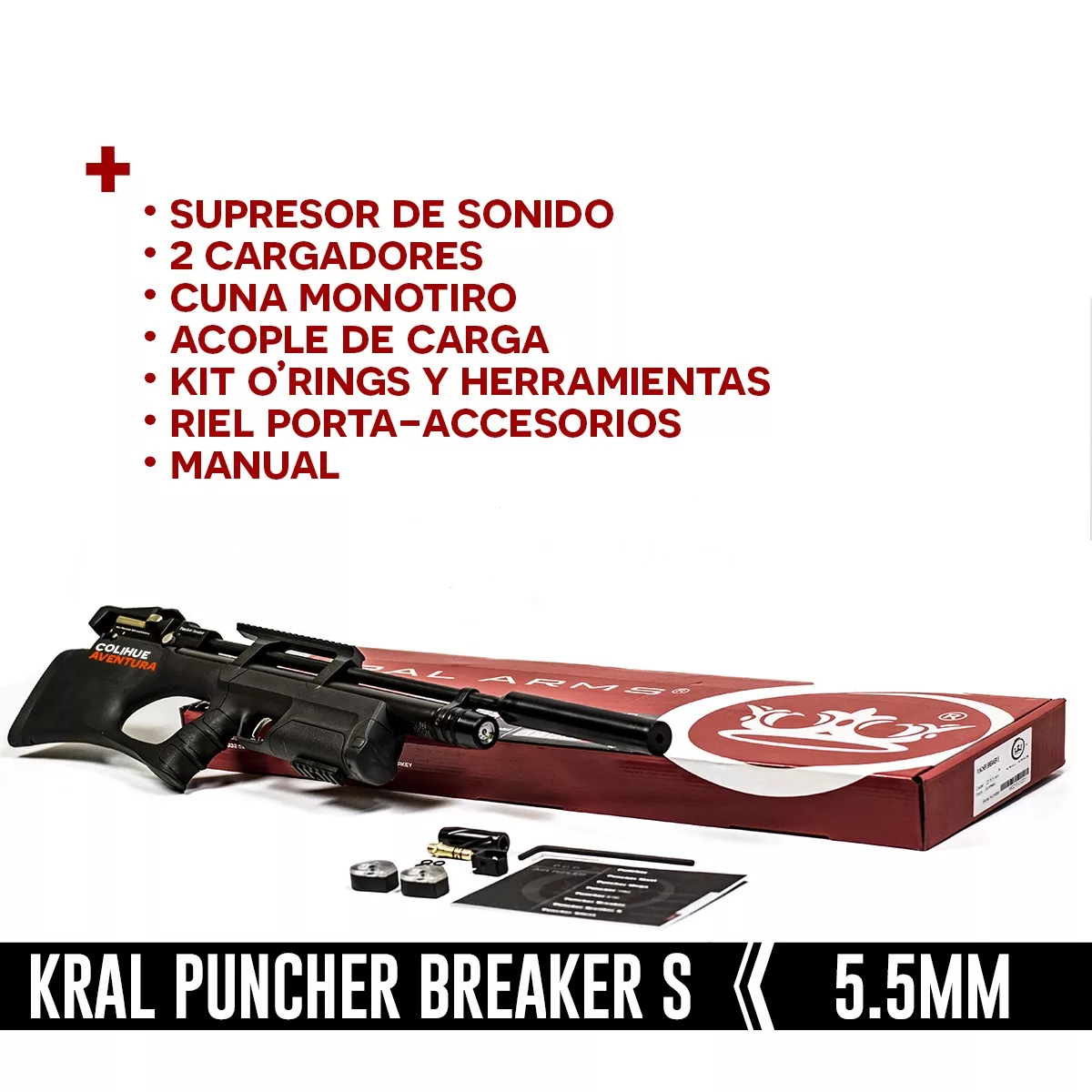 | ACCESORIOS INCLUIDOS | Supresor de Sonido 2 – Cargadores de 12 disparos Acople de Carga Kit de O’rings y Herramientas |